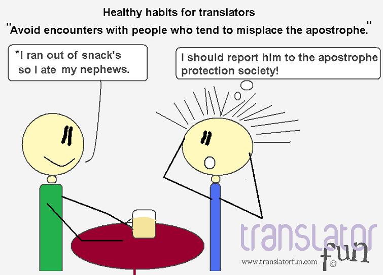 Healthy habits for translators I — Avoid encounters with people who tend to misplace the apostrophe.
