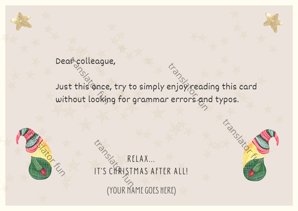 To purchase one of these cards, simply click the “buy now” button and follow the purchase process. Don’t forget to enter the purchase code in the comment section and/or send an email to translatorfun @ gmail.com to indicate the purchase code or title of the card you’ve just purchased.