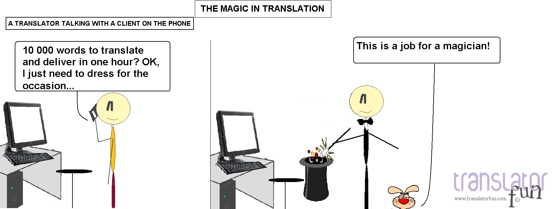 Have you been there? Do you think that this is an accurate description of a day in a freelance translator’s life? Is it a myth or an exaggeration, maybe? Is there some truth in this description?