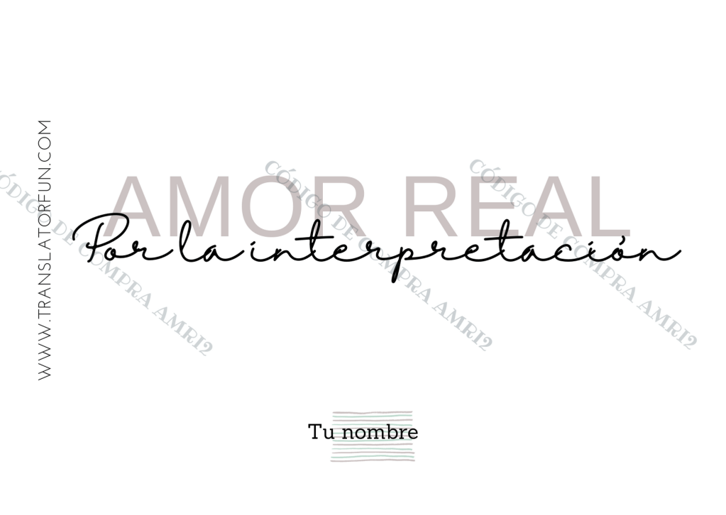 ¿Deseas expresarle al mundo lo que sientes por tu profesión? Agrega esta tarjeta como firma de tus mensajes de correo electrónico o usa el diseño para tus tarjetas profesionales. Una vez que compres la imagen la recibirás en tu bandeja de entrada sin marcas de agua. No olvides de enviar el código de compra de la tarjeta (el de esta tarjeta es AMRI2) y enviar un mensaje de correo electrónico a translatorfun @ gmail.com indicando cómo deseas que aparezca tu nombre y tu firma.